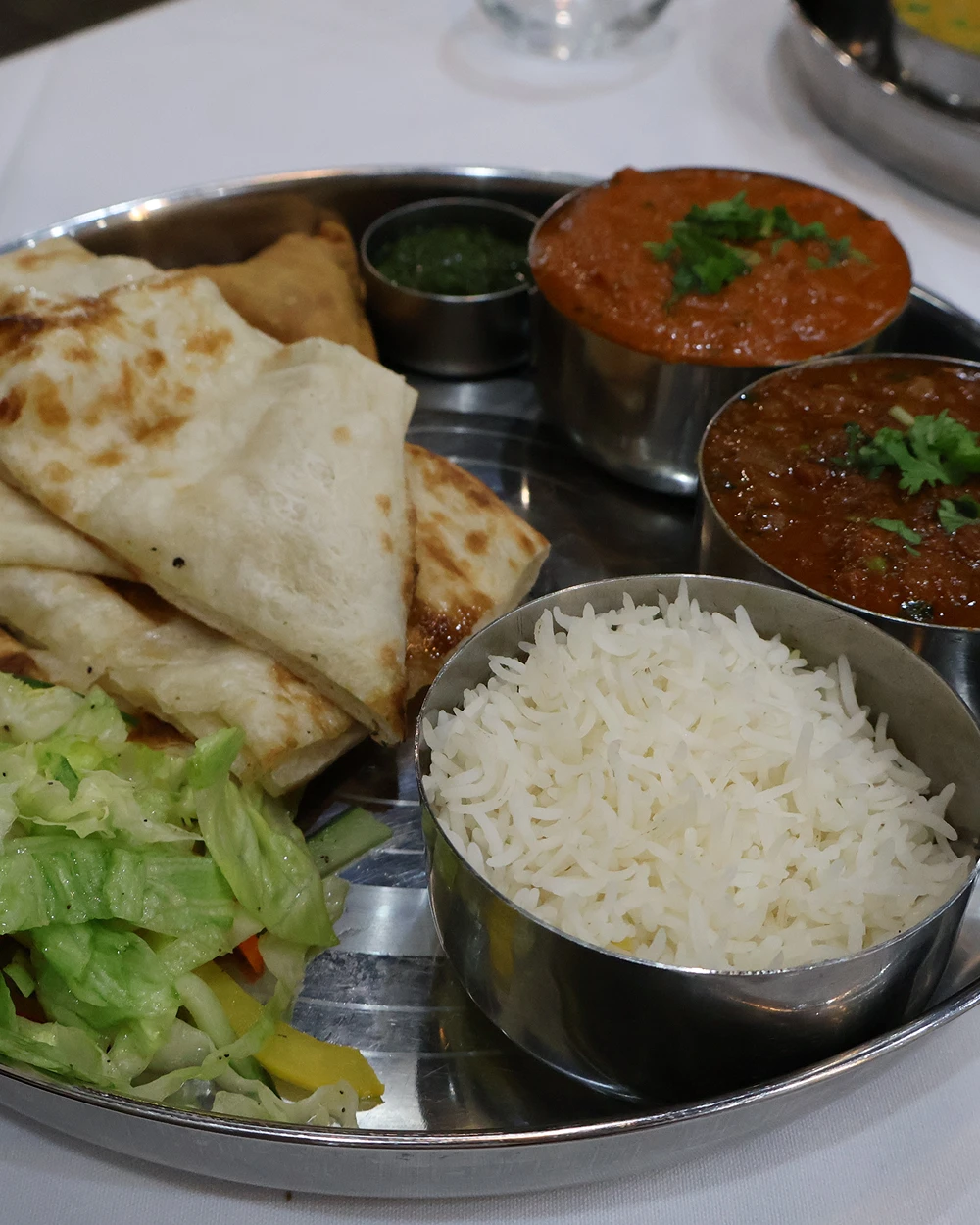 (Choice: one main entree, salad, rice, naan, samosa, and a pop)